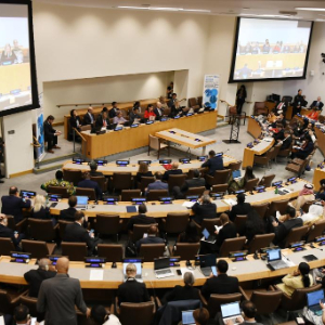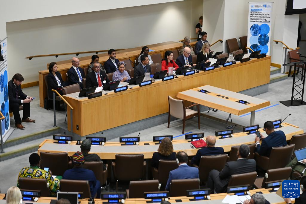 这是9月25日在位于纽约的联合国总部拍摄的第四次联合国非传染性疾病和心理健康高级别会议现场。新华社记者 李睿 摄