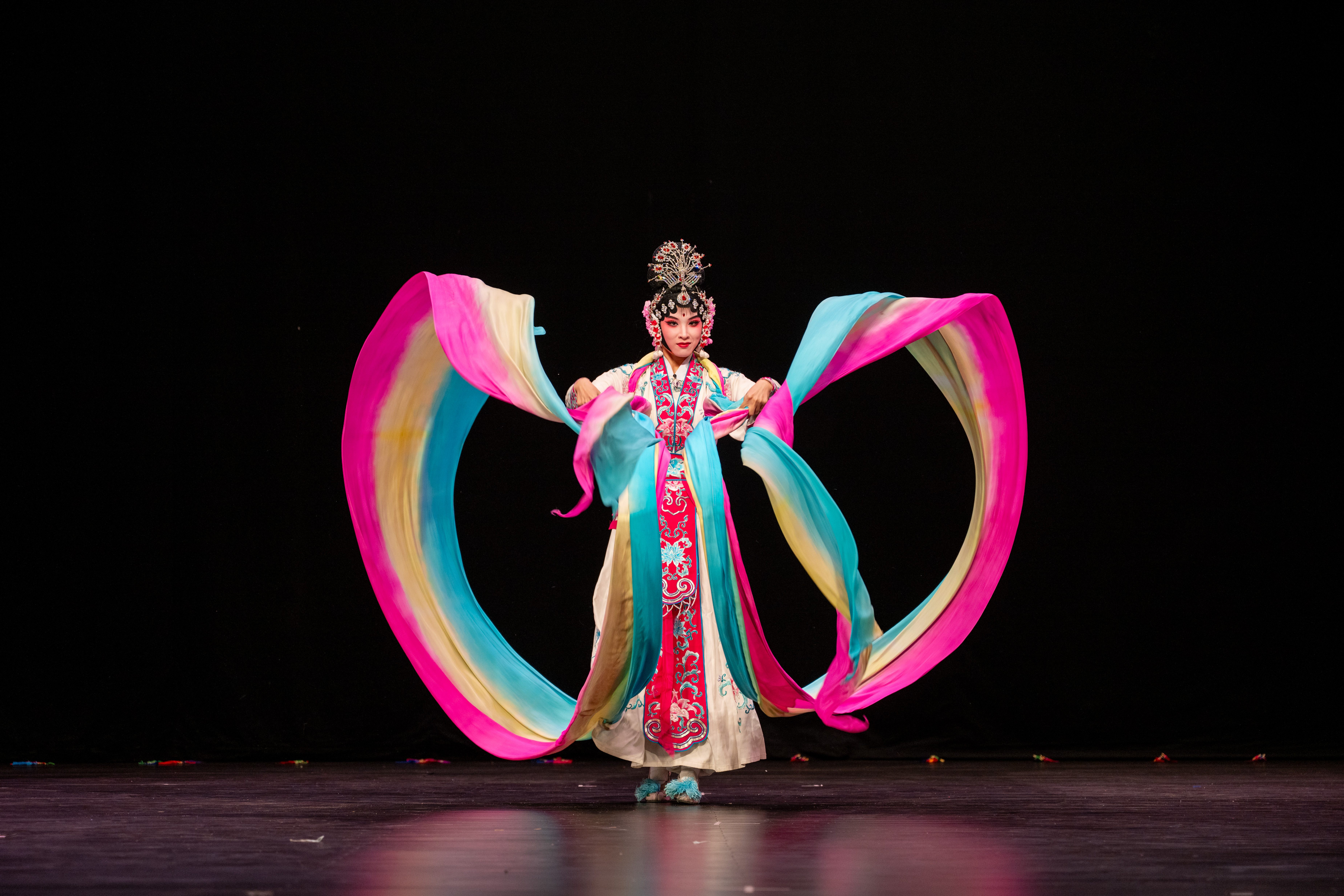 9月25日,在刚果(金)首都金沙萨,演员表演婺剧《天女散花》。新华社记者 郑扬子 摄
