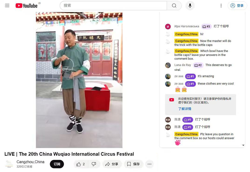 9月28日至30日,第二十届中国吴桥国际杂技艺术节活动通过新华网客户端、河北文旅脸书账号、沧州宣传部旗下多个海外社交账号进行了为期三天、共24小时的“马拉松”式现场直播。