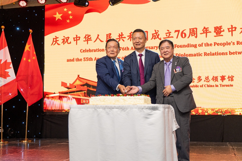 中国驻多伦多总领馆近日举行庆祝中华人民共和国成立76周年暨中加建交55周年招待会。