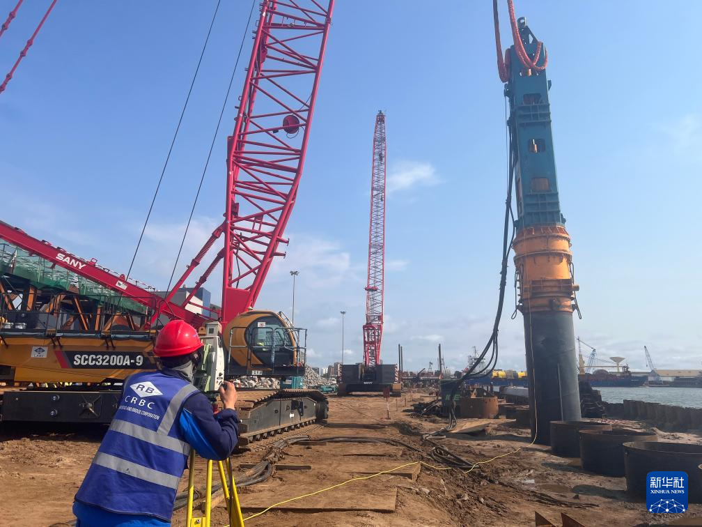 10月,在刚果(布)西部的黑角港,打桩机和正在疏浚作业的船舶发出阵阵轰鸣。由中国路桥工程有限责任公司承建的黑角港东部码头扩建项目正在施工中。
