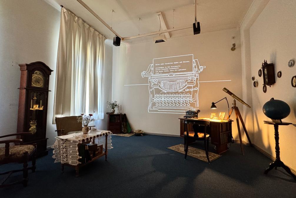 这是6月14日在德国柏林拍摄的柏林工业大学学生为“宇宙夏日节·爱因斯坦特别篇”活动特别创作的空间装置作品“爱因斯坦的房间”(手机照片)。新华社记者黄燕摄