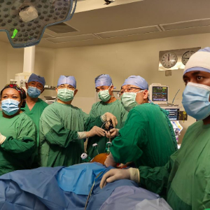10月6日,在斐济首都苏瓦殖民战争纪念医院,中国海军“丝路方舟”号医院船医生与当地医生为患者进行手术。