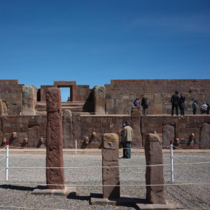 8月19日,人们在玻利维亚蒂亚瓦纳科古城遗址参观。