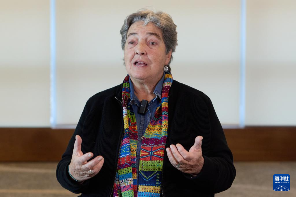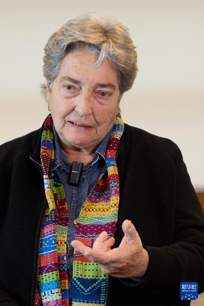 9月25日,乌拉圭知名社会活动家、记者露西·加里多在乌拉圭首都蒙得维的亚接受新华社记者采访。新华社记者 孟鼎博 摄