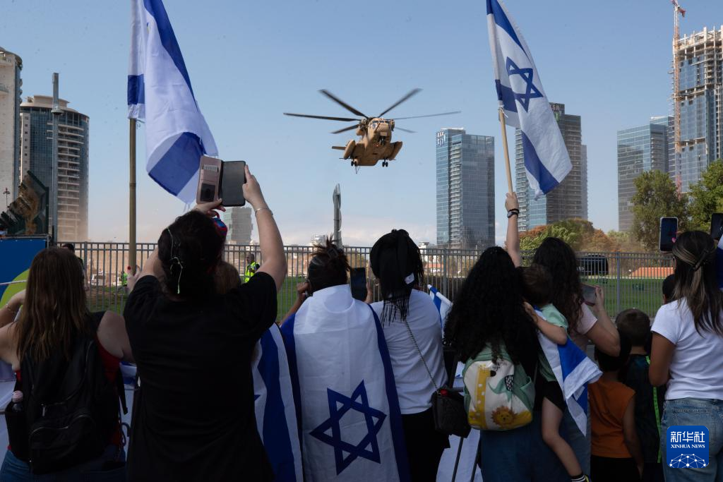 10月13日,搭载获释以方被扣押人员的直升机抵达以色列佩塔提克瓦的一所医院。