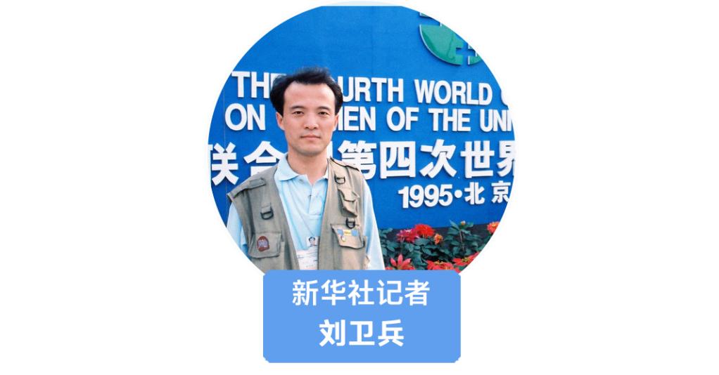 1995年,记者刘卫兵在世界妇女大会场外留影。