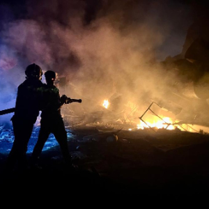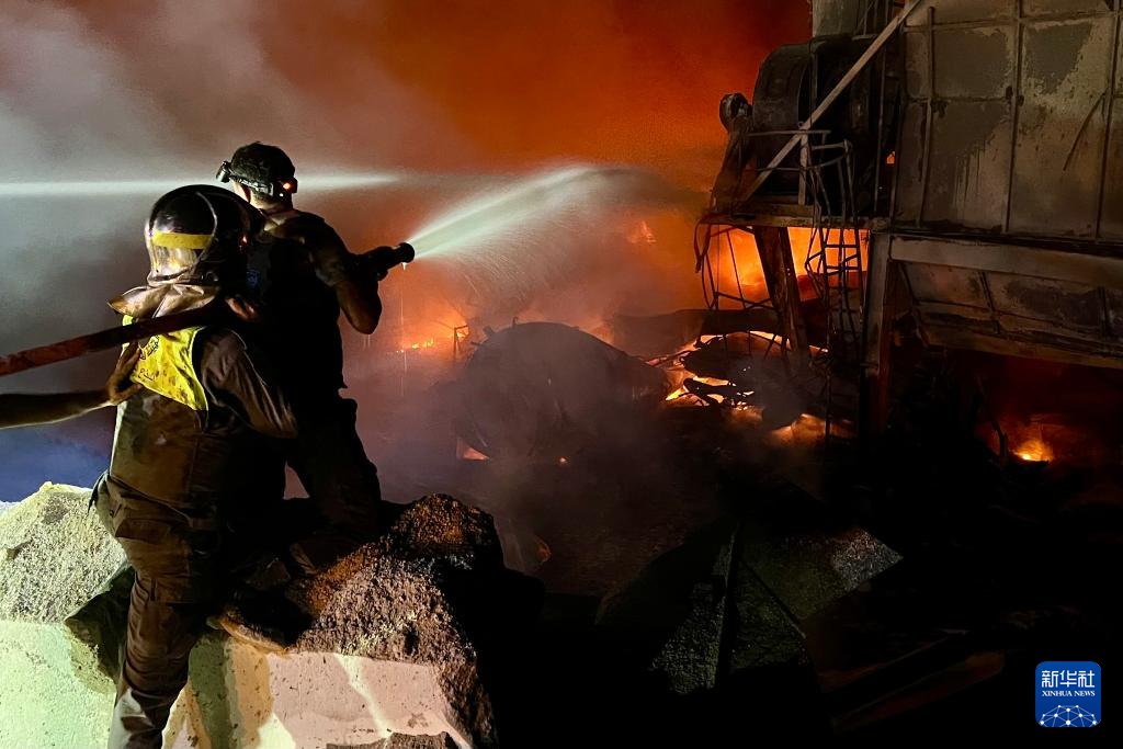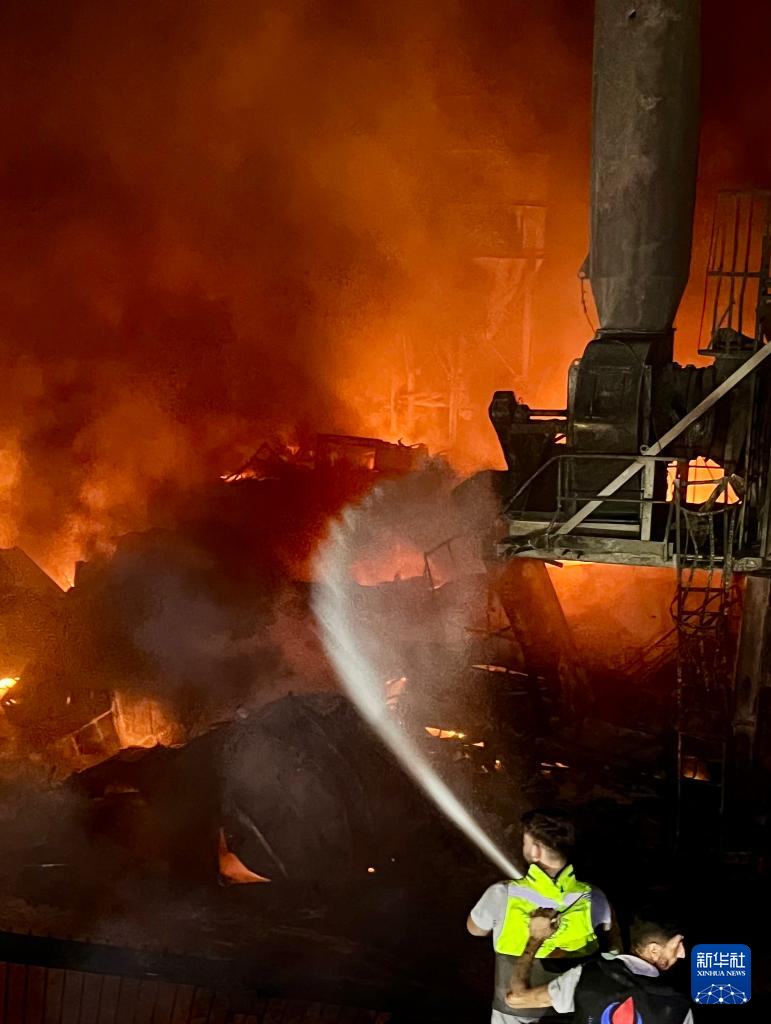 10月16日,在黎巴嫩安萨尔,人们试图扑灭遭空袭地点燃起的大火。