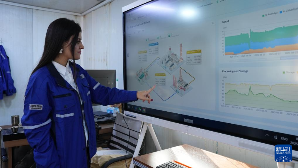 10月12日,首批振华石油奖学金项目留学生阿娅·伊马德在伊拉克东巴油田数智油田部工作。新华社记者 段敏夫 摄