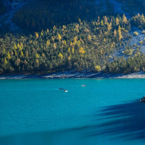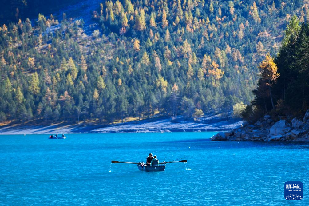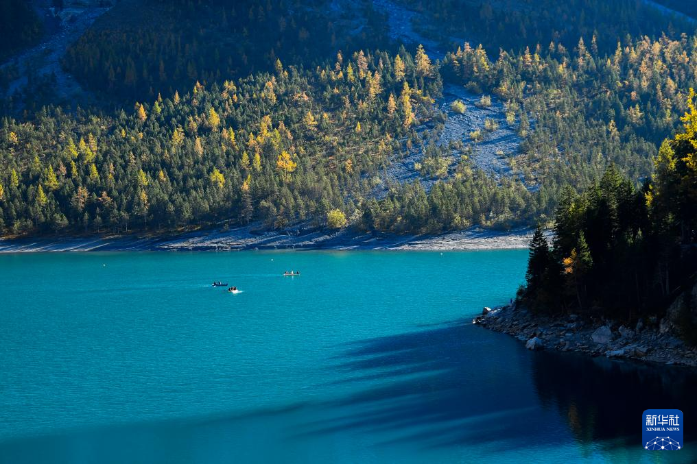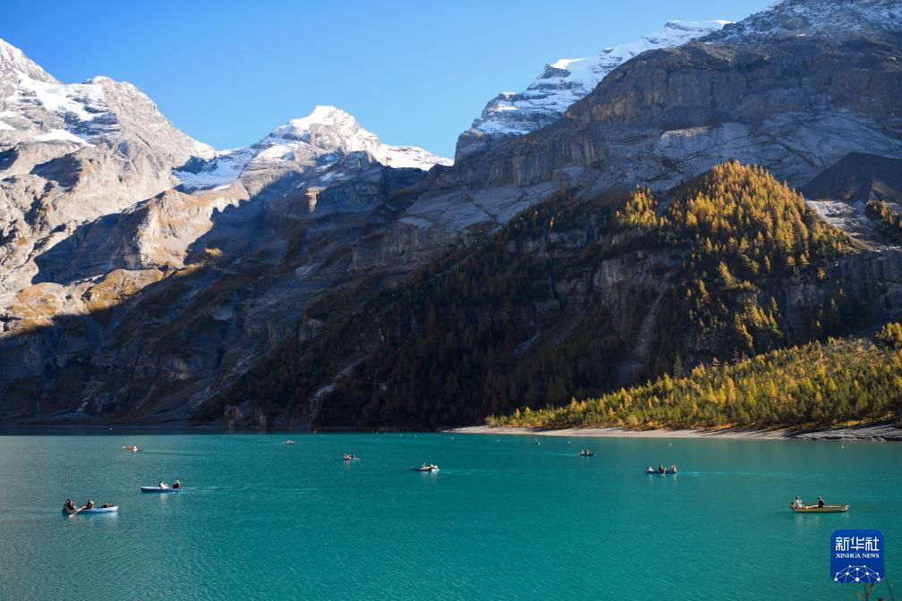 10月18日,人们在瑞士伯尔尼州厄希嫩湖上泛舟。