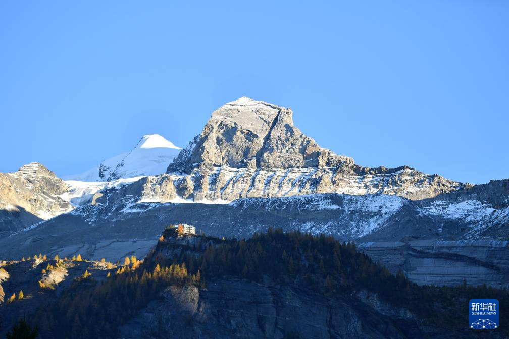 这是10月18日在瑞士伯尔尼州厄希嫩湖拍摄的阿尔卑斯山秋景。