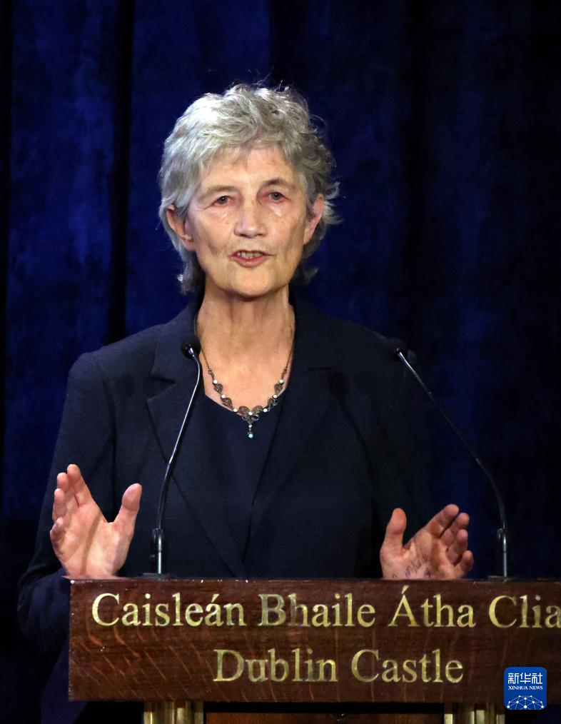 10月25日,在爱尔兰首都都柏林,凯瑟琳·康诺利获胜后发表讲话。新华社发(埃蒙·法雷尔摄)