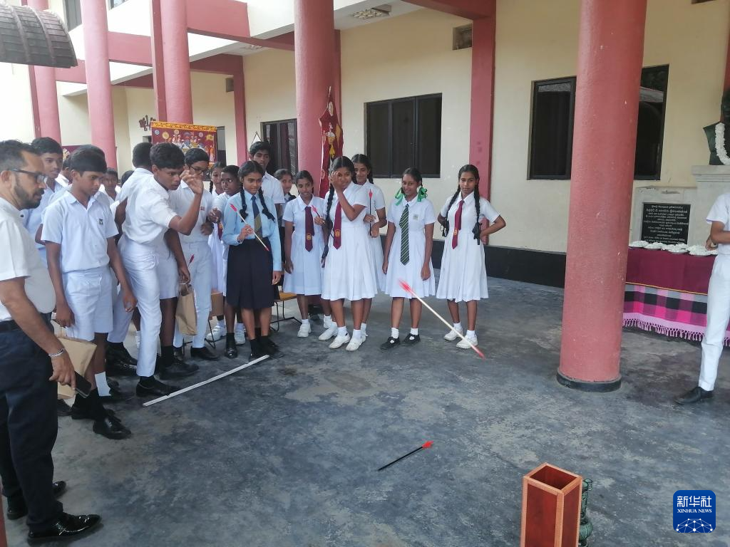 10月30日,在斯里兰卡霍勒讷举行的“我和中国”文化交流活动上,斯里帕利学院学生体验投壶。新华社记者 吴子钰 摄