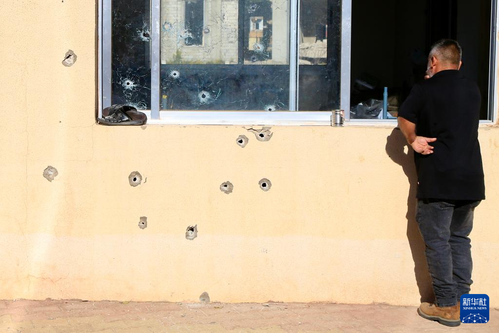 这是10月30日在黎巴嫩卜利达村拍摄的墙上的弹痕。