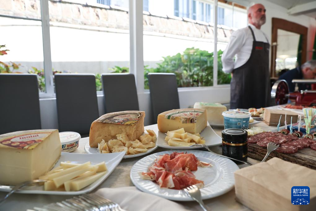 这是10月30日在意大利莫雷塔拍摄的使用伊纳尔皮公司乳制品制作的意大利经典美食。新华社记者 李京 摄