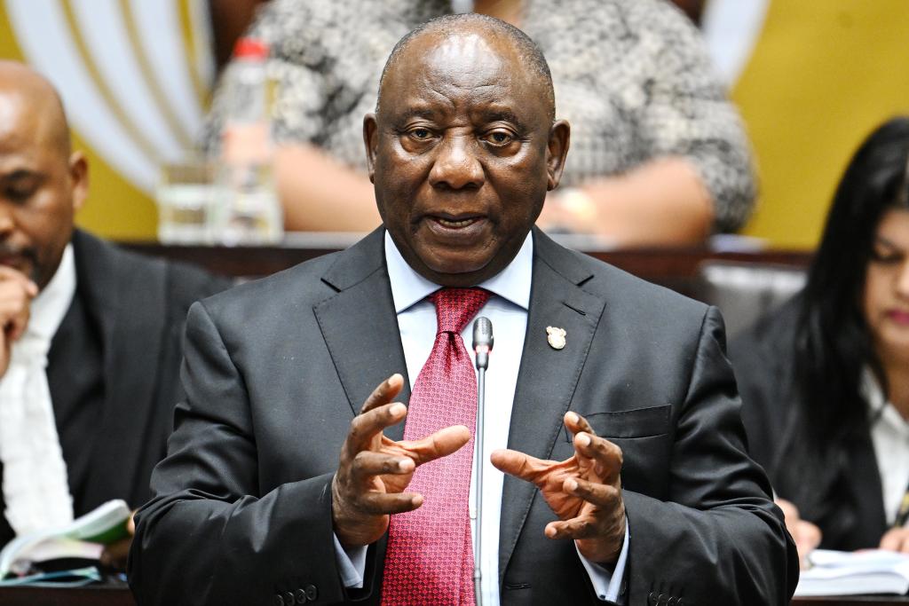 9月9日,在南非开普敦,南非总统拉马福萨在南非国民议会回答议员提问。新华社发(哈比索·姆卡贝拉摄)