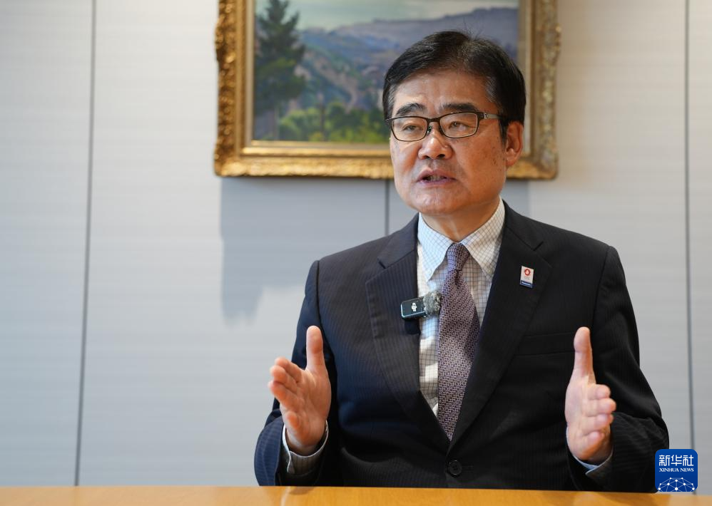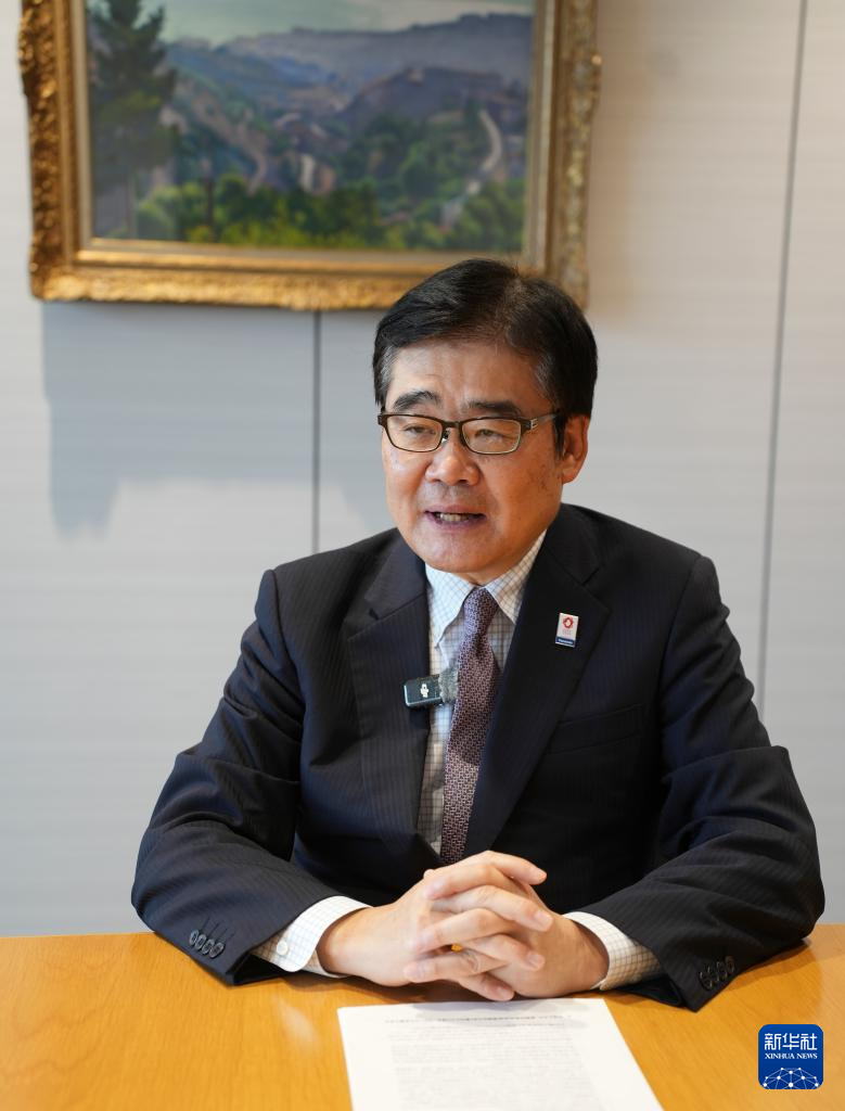 10月3日,松下控股集团全球副总裁、中国日本商会会长本间哲朗在日本东京接受新华社记者采访。新华社记者 钱铮 摄