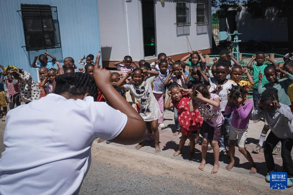 10月22日,在位于南非北开普省德阿镇的一家龙源南非公司运营的儿童早教中心内,老师与孩子们互动。新华社记者 韩旭 摄