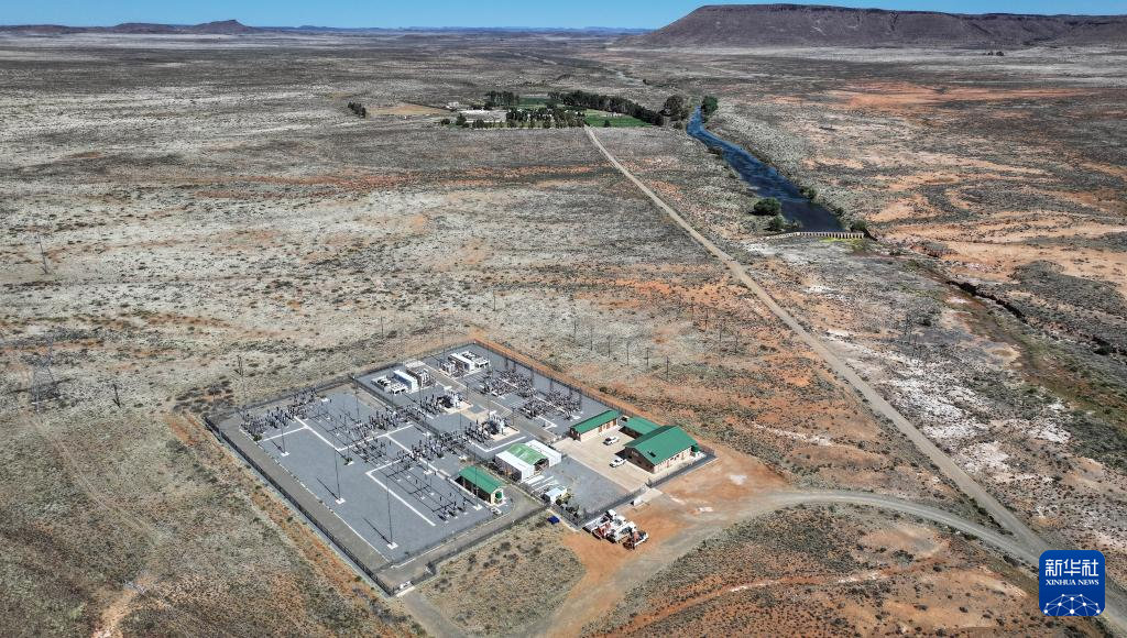 这是10月22日在南非北开普省德阿镇拍摄的德阿风电项目变电站(无人机照片)。新华社记者 韩旭 摄