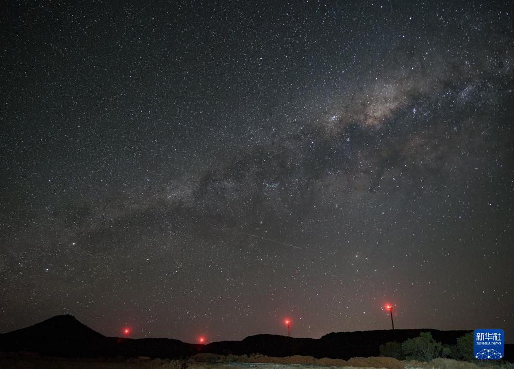 10月22日,在南非北开普省德阿镇,德阿风电项目的风机在星空下运转。新华社记者 韩旭 摄