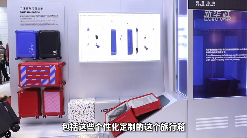 此次CASETiFY展台还展出了今年5月在中国内地正式发布的 CASETiFY TRAVEL 弹韧防摔系列旅行箱。新领域的展品不仅能个性化定制,还通过现场设置防摔测试装置,直观展示产品性能。