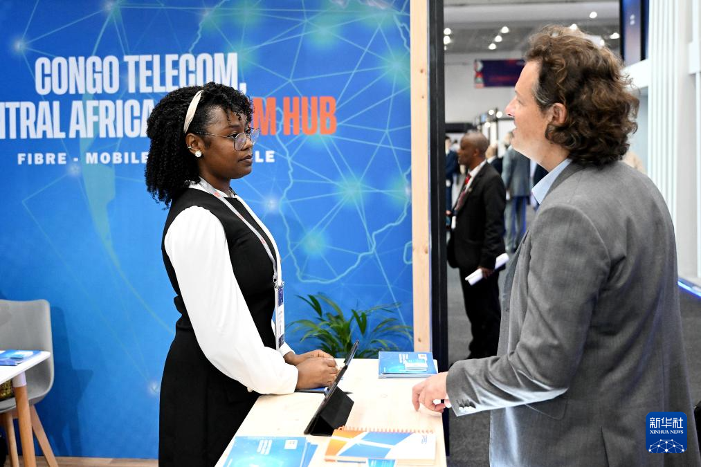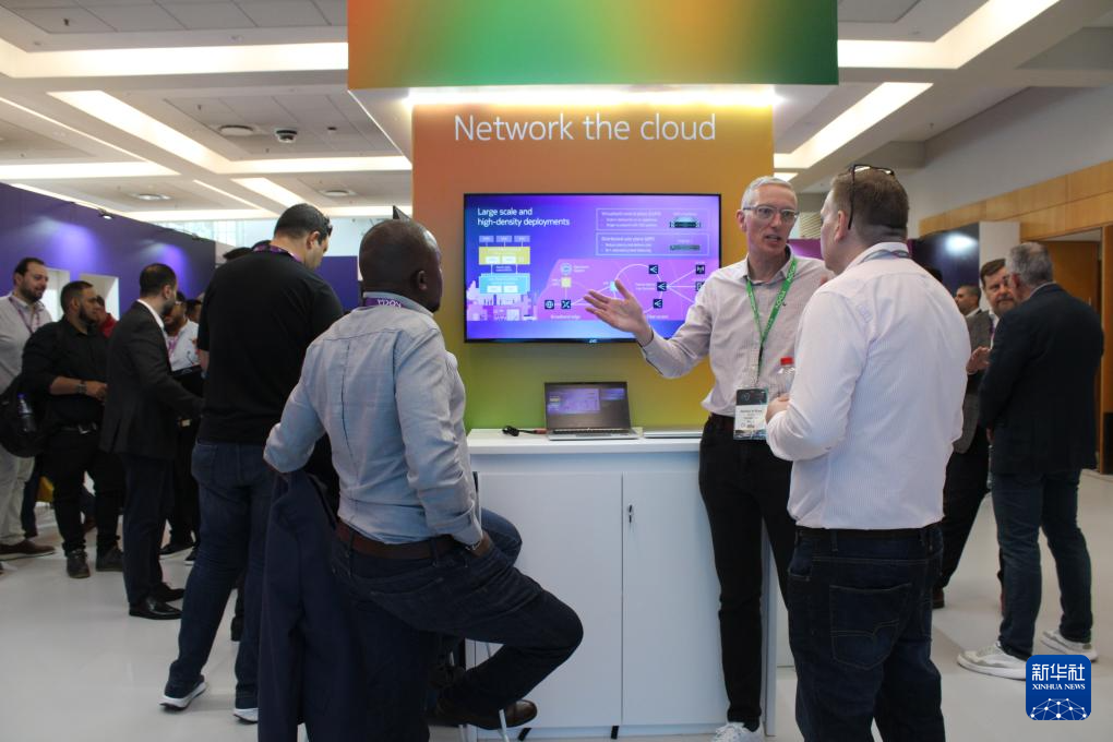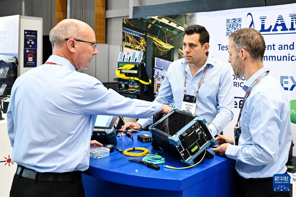 11月11日,在南非开普敦,人们在2025年非洲科技节的非洲通信展上交流。新华社发(哈比索·姆卡贝拉摄)