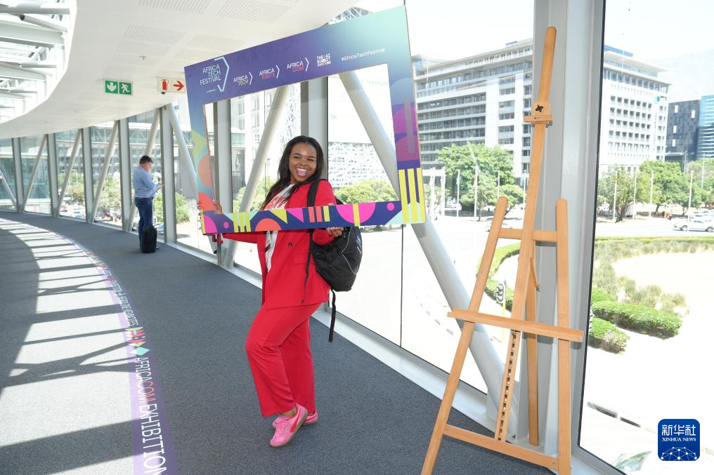 11月11日,在南非开普敦,一名与会代表在2025年非洲科技节上留影。新华社记者 王雷 摄