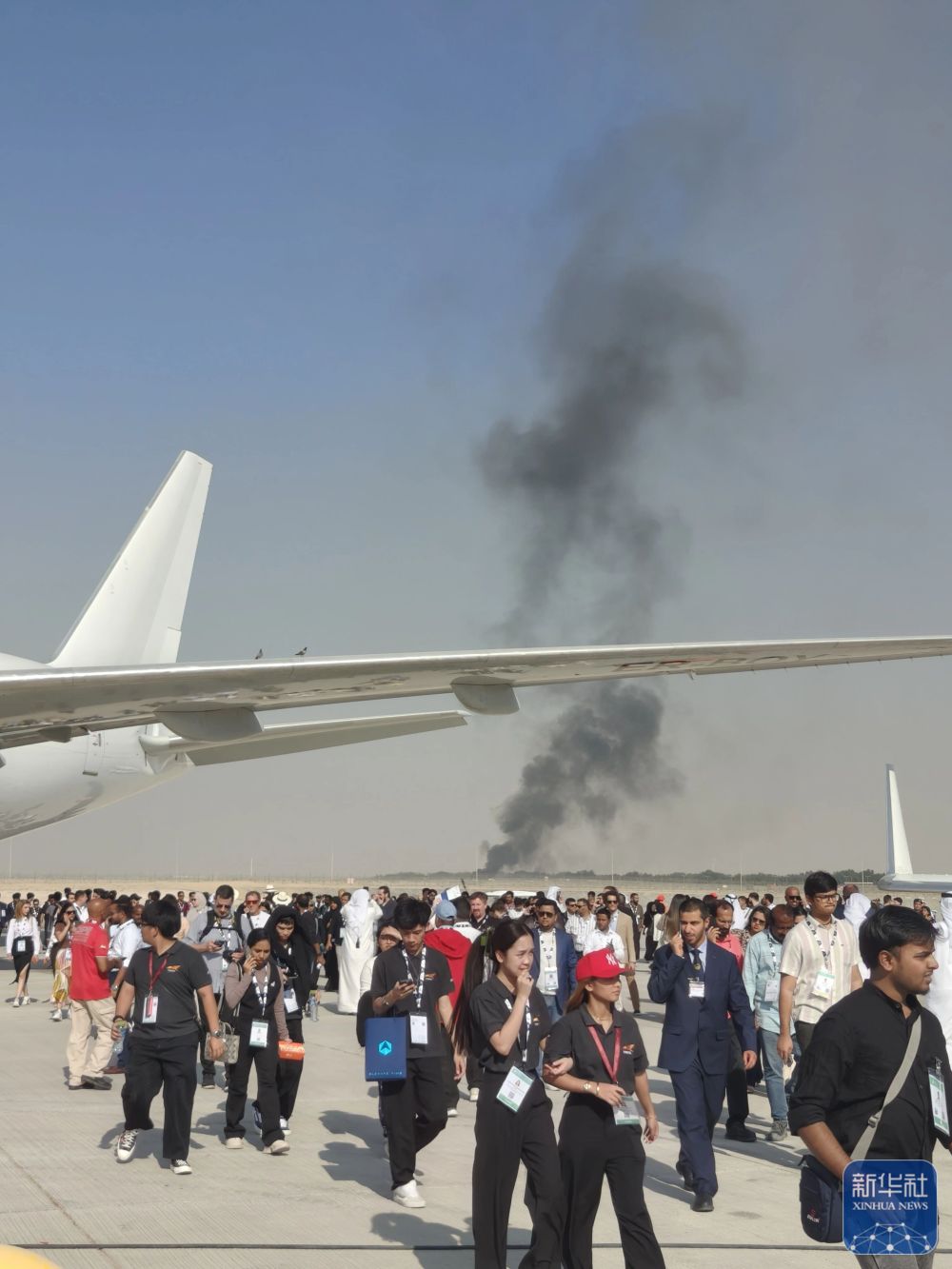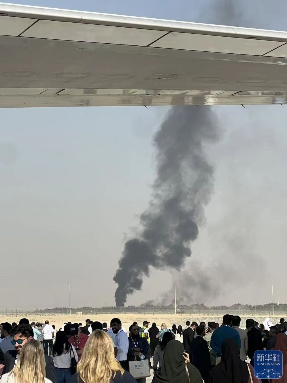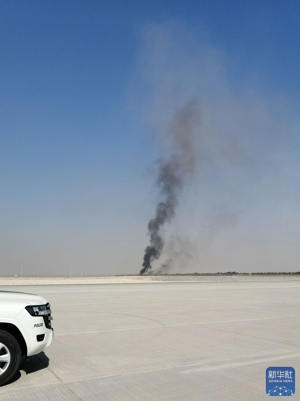 ↑11月21日,在阿联酋迪拜,飞机坠毁现场冒出滚滚浓烟。