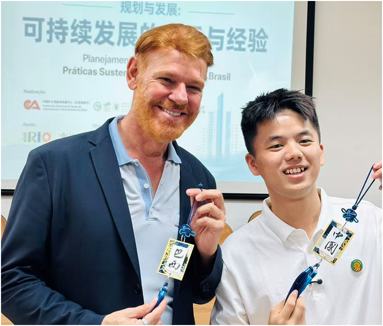 这样的瞬间,在参访途中不断上演。来自广东的徐楚涛曾担心语言障碍会让旅程显得枯燥,可现实却给了他“巨大的惊喜”。走在圣保罗街头,常有年轻人主动过来合影、互关社交账号。一个笑容、一个握手,就是最好的沟通方式。在他看来,巴西“是一个能容纳全世界文化的、充满人情味的包容之地。”身为青年书法博主的徐楚涛,特意带来了中国宣纸。在11月18日弗鲁米嫩塞联邦大学孔子学院的交流活动中,他教巴西友人书写“福”字。“这张薄薄的纸,成为我们相遇的‘实体记忆’。”