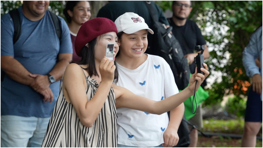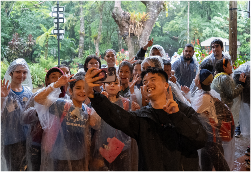 视频博主徐楚涛和偶遇的伊瓜苏小学生们合影。