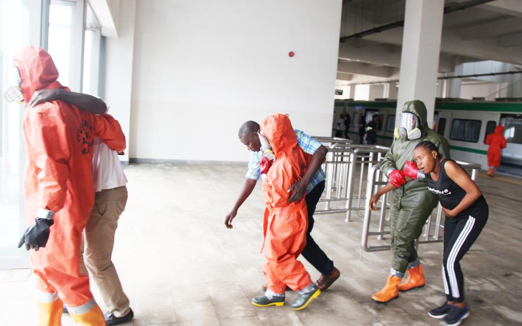 2021年7月7日,救援人员在尼日利亚阿布贾举行的反恐演习期间模拟转移伤者。新华社发(彼得·奥巴摄)
