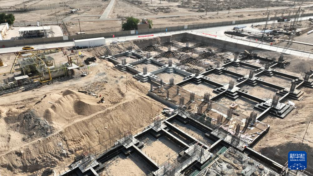 这是11月20日在伊拉克纳杰夫省拍摄的纳杰夫燃机电厂联合循环扩建项目施工现场(无人机照片)。新华社发(吴宇霄摄)