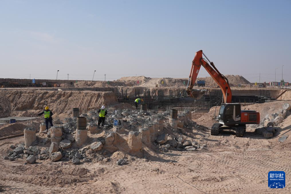 这是11月18日在伊拉克卡尔巴拉省拍摄的卡尔巴拉燃机电厂联合循环扩建项目施工现场。新华社记者 段敏夫 摄
