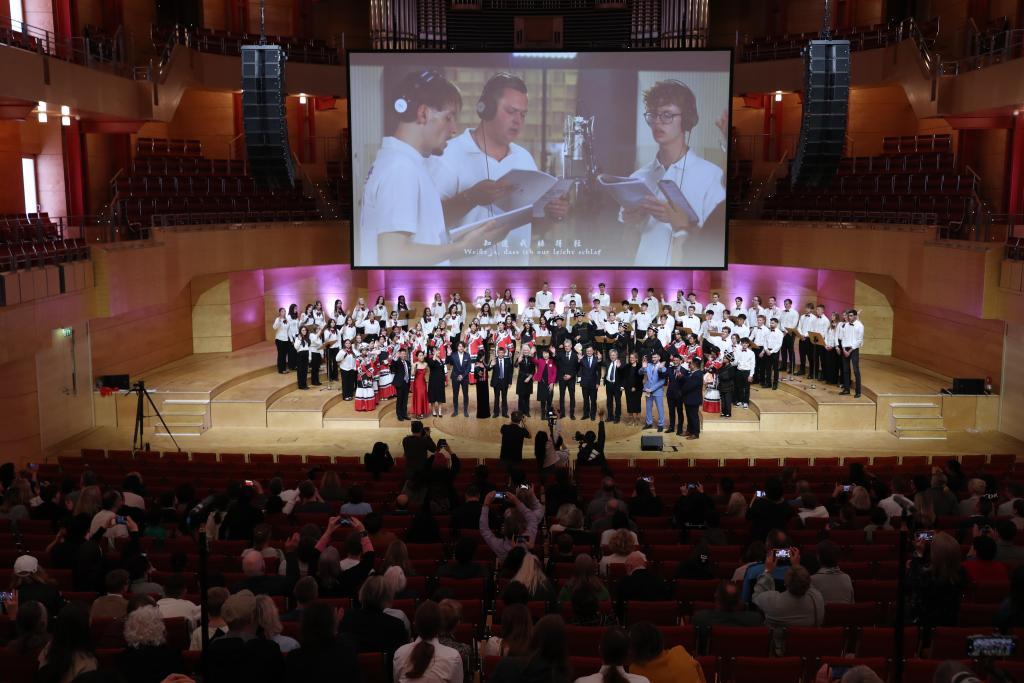 这是10月4日在德国埃森市拍摄的中德青少年交流音乐会现场。新华社记者杜哲宇摄