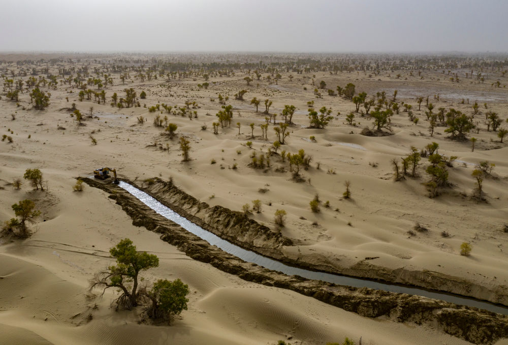 如今,站在塔里木河畔,绵延的胡杨林、草方格与波光粼粼的河面相互映衬。绿锁流沙为当代计,生态安全为万世谋。作为塔克拉玛干沙漠绿色阻沙防护带工程的重要组成部分,塔里木河生态输水工程为塔克拉玛干沙漠增添新绿,打造成沙漠中的“绿色长廊”。