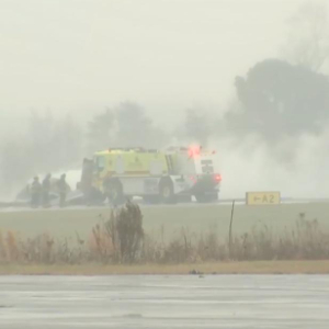 这张12月18日的视频截图显示的是消防人员在美国北卡罗来纳州斯泰茨维尔地区的机场附近工作。新华社/美联