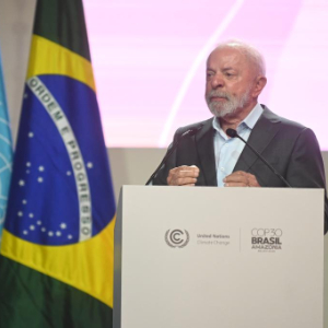 11月10日,巴西总统卢拉在巴西北部城市贝伦举行的《联合国气候变化框架公约》第三十次缔约方大会(COP30)开幕式上发表讲话。新华社发