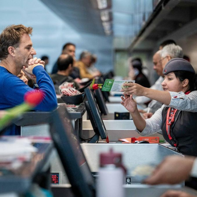 12月20日,旅客在美国旧金山国际机场办理值机手续。新华社发(朱子于摄)