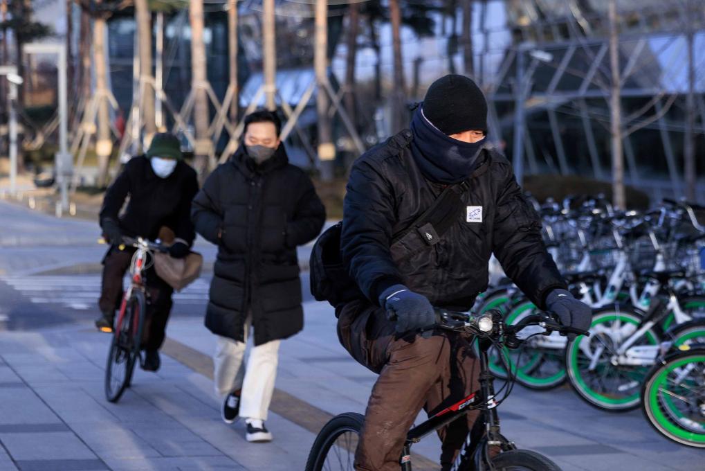 1月9日,在韩国首都首尔,人们在低温中出行。新华社发(朴晋泽摄)