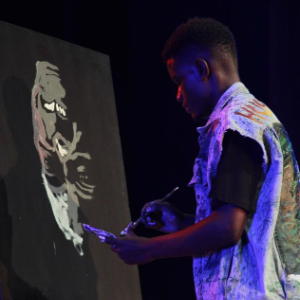 12月5日,一名选手在津巴布韦首都哈拉雷举行的第九届津巴布韦“梦想秀”决赛上现场作画。新华社发(塔法拉摄)