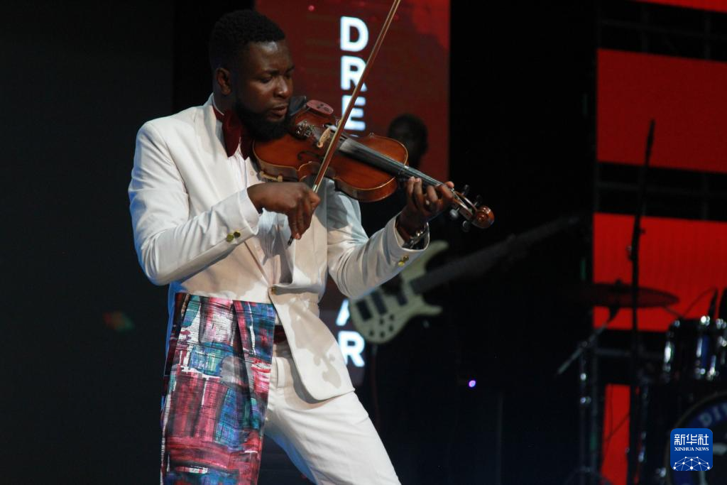 12月5日,一名选手在津巴布韦首都哈拉雷举行的第九届津巴布韦“梦想秀”决赛上表演小提琴。新华社发(塔法拉摄)