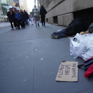 时值岁末,在美国纽约充满节日气氛的街头,时常可见无家可归者和其他寻求救助的人们。