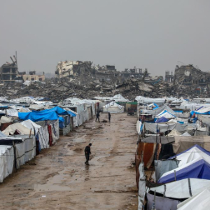 这是12月11日在加沙地带加沙城的宰通地区拍摄的巴勒斯坦人帐篷区。新华社发(里泽克·阿卜杜勒贾瓦德摄)