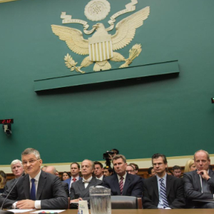 图为2015年10月8日,在美国首都华盛顿,时任大众汽车集团美国分公司总裁兼首席执行官迈克尔·霍恩在美国国会众议院能源和商务委员会举行的听证会上作证。新华社记者鲍丹丹摄