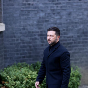 10月24日,在英国伦敦,乌克兰总统泽连斯基走向唐宁街10号首相府。新华社记者李颖摄