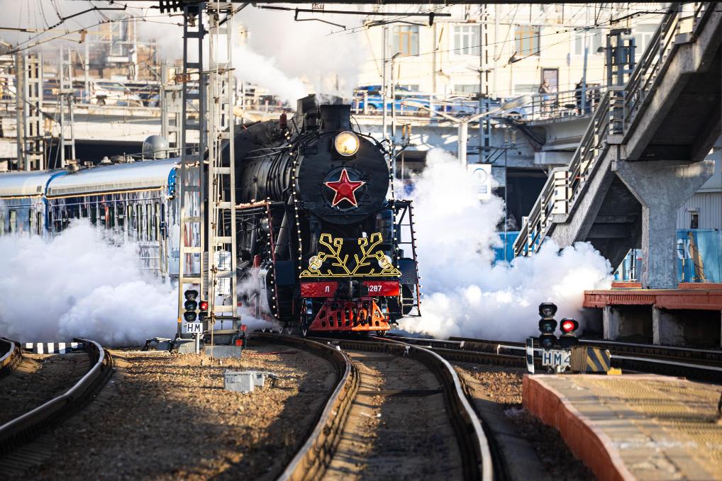 这是11月19日在俄罗斯符拉迪沃斯托克火车站拍摄的“严寒老人”专列。新华社发(安德烈·马特维延科摄)