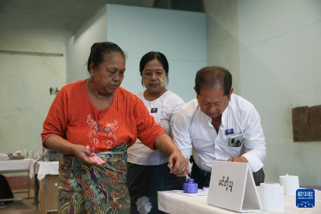 12月28日,选民在缅甸仰光省的一个投票站投票。新华社发(苗觉梭摄)