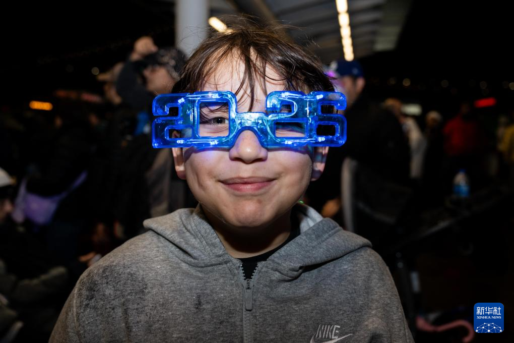 2025年12月31日,一名男孩在美国加利福尼亚州旧金山参加跨年活动,迎接2026年的到来。