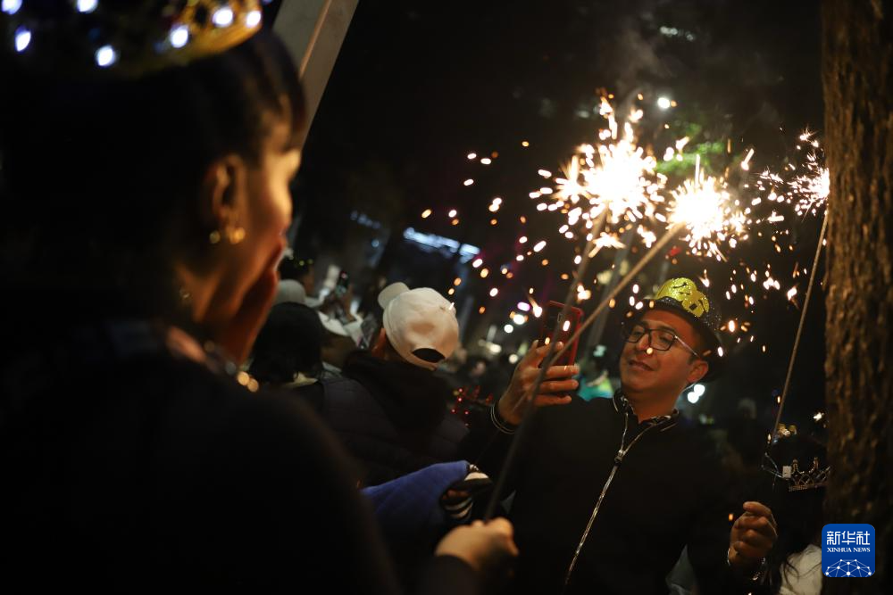 2025年12月31日,人们在墨西哥首都墨西哥城改革大道参加跨年活动,迎接2026年的到来。