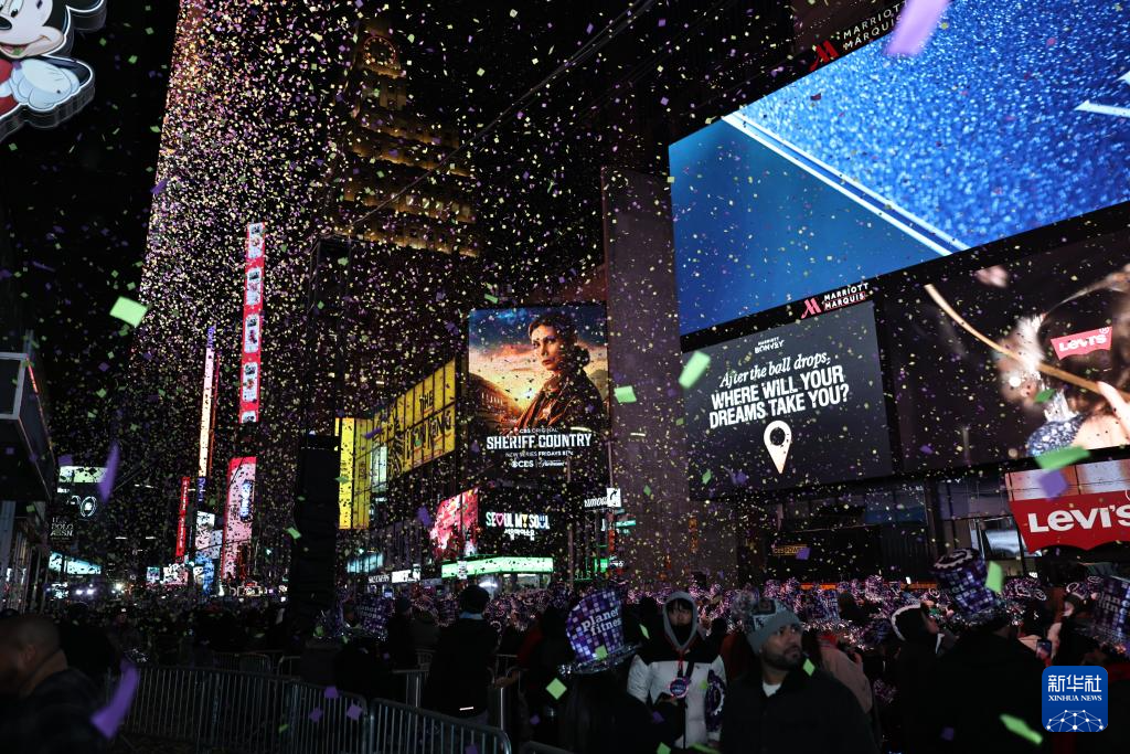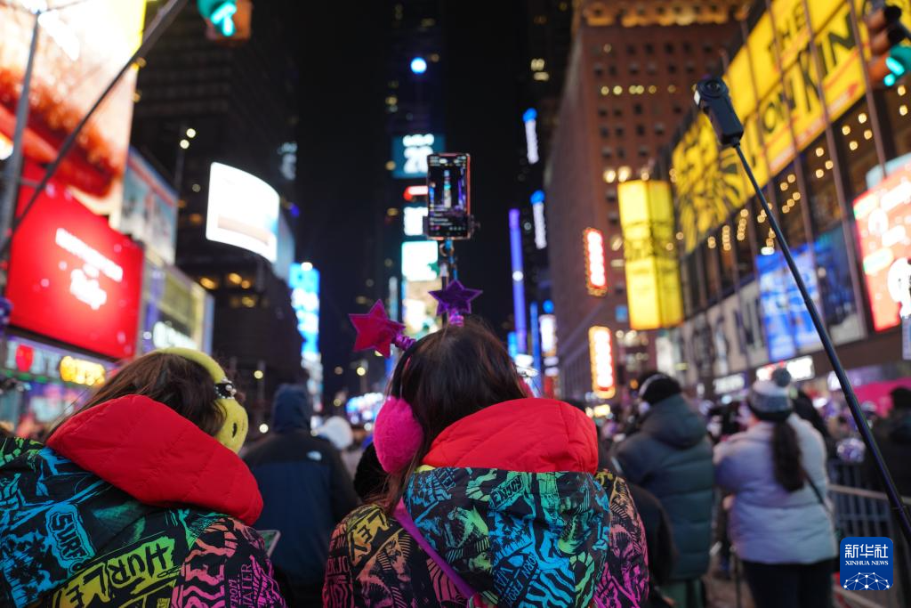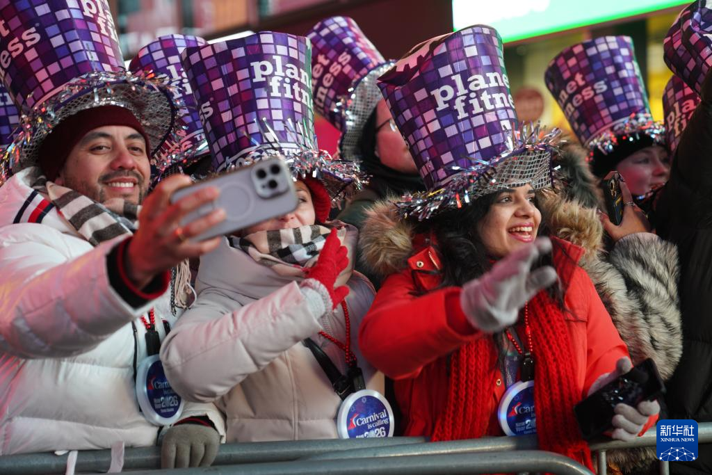 2025年12月31日,人们在美国纽约时报广场参加跨年庆祝活动。